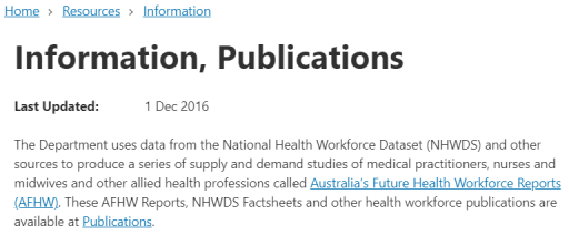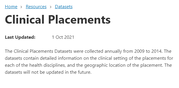 Summary Statistics for all registered professions, populated with statistics from the Health Workforce Data Tool using the National Health Workforce Dataset (NHWDS)