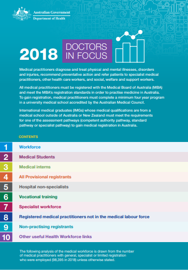 Summary Statistics for the Medical Profession, populated with statistics from the Health Workforce Data Tool using the National Health Workforce Dataset (NHWDS)