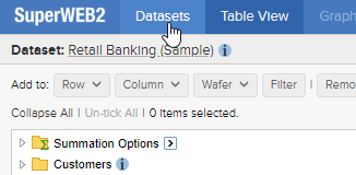 You can also access saved tables from the Datasets tab. This is displayed when you log in to SuperWEB2, or whenever you click the Datasets link in the top left corner: